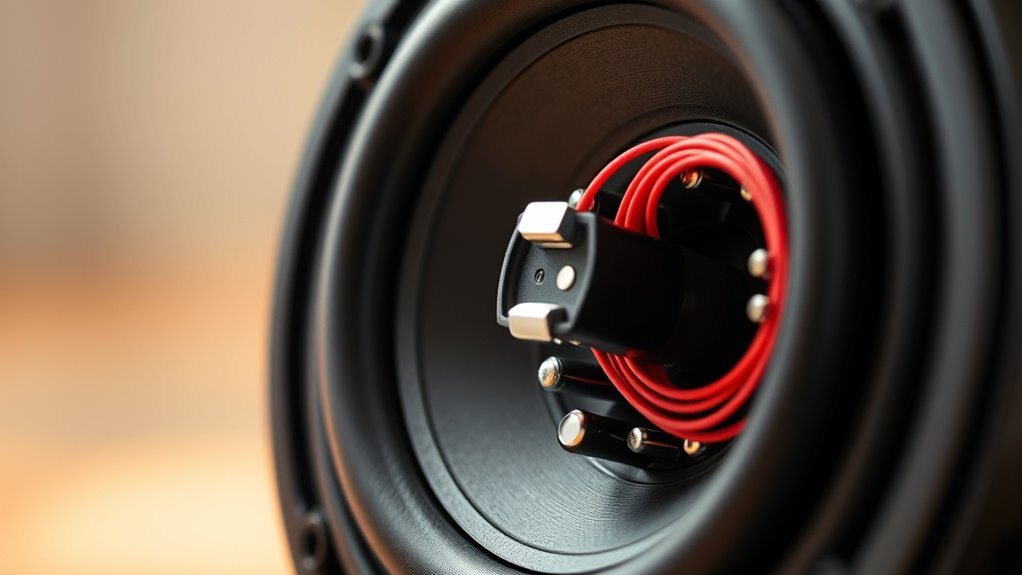 One essential factor to consider is phase alignment. When speakers aren’t properly aligned in phase, their sound waves can cancel each other out or reinforce unpredictably, leading to a hollow or boomy sound. Correct phase alignment ensures that all speakers work together harmoniously, producing a unified sound image. This involves adjusting the timing of signals so that the wave peaks and troughs match across all drivers. When you achieve good phase alignment, the result is a more precise and natural sound, with no unwanted dips or peaks that can distort the listening experience.