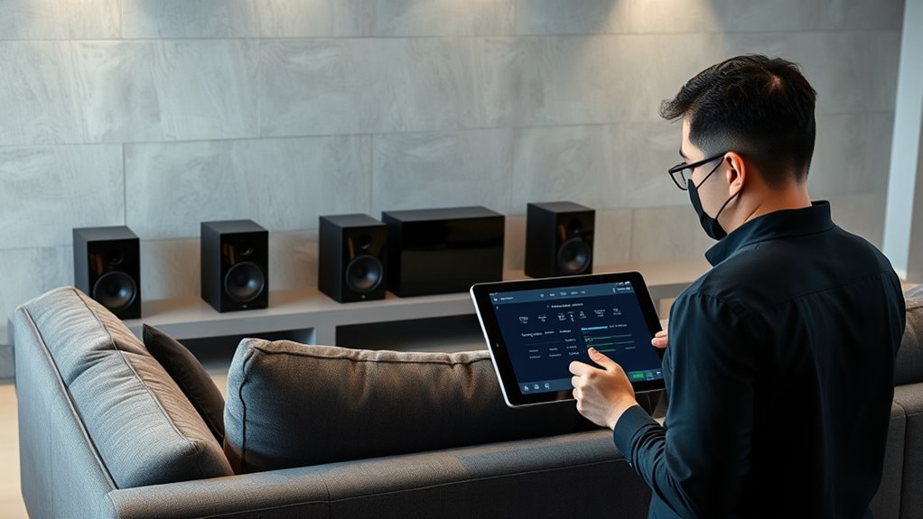 By carefully calibrating your wireless speakers and surround modules, you guarantee a balanced, immersive sound experience. It’s tempting to rely on auto-settings or shortcuts, but precision brings clarity where chaos could reign. Think of calibration as the quiet art behind the loud moments—it’s the difference between hearing your favorite scene and truly experiencing it. When you take the time to fine-tune, sound becomes more than noise; it becomes your personal theater.