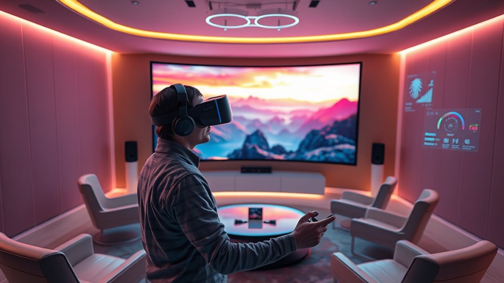 Once you’re immersed, the boundaries between the digital and physical worlds dissolve. You might find yourself navigating a virtual city, exploring a distant planet, or training for real-world scenarios—all within a space designed to trick your senses into accepting the illusion. The combination of virtual design and sensory integration is what makes next-generation entertainment rooms so compelling. They don’t just display content; they envelop you in a convincing universe that feels as real as the physical world, opening up endless possibilities for entertainment, education, and beyond. Additionally, understanding how color accuracy influences visual fidelity is crucial for creating truly immersive environments that feel authentic and engaging.