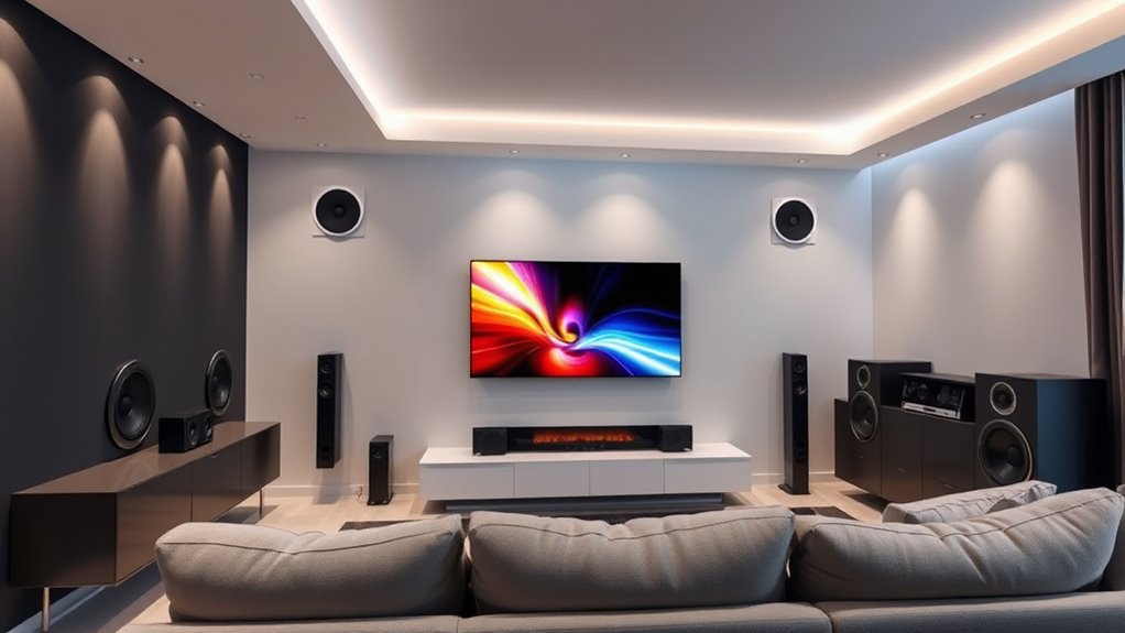 A multi-zone entertainment system truly transforms your home, offering seamless audio everywhere. Did you know that a whole-home audio system can increase your home’s value by up to 3%? With just a few simple steps, you can enjoy synchronized music in every room, creating the perfect ambiance for any occasion. So go ahead—dive in and enjoy the convenience and luxury of a customized, multi-zone setup that makes every moment at home more enjoyable.
