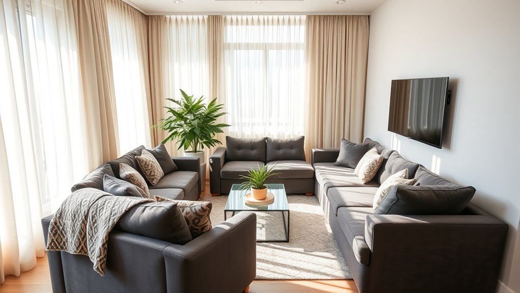 Remember, selecting the right seating arrangement enhances both comfort and viewing experience. Did you know that a well-organized space can increase focus by up to 25%? By considering factors like space, purpose, and viewer needs, you guarantee everyone feels at ease and engaged. So, take the time to plan carefully; your comfort and enjoyment depend on it. A thoughtful setup transforms any space into a perfect spot for relaxation and connection.