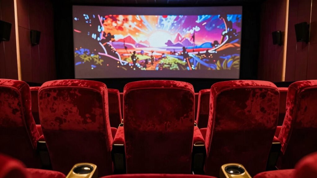 When you settle into recliner theater seats, the enhanced visual depth immediately transforms your viewing experience. You’ll notice how the image feels richer and more immersive, making the movie seem larger than life. This sense of scale encourages you to engage more fully, heightening audience participation. Your eyes are drawn into the scene, amplified by: