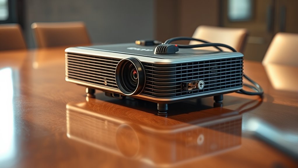 While 3D support in modern projectors can enhance your viewing experience, it often comes with hidden costs. You might find yourself investing in additional hardware, like 3D glasses and specialized screens, which quickly adds up. These accessories aren’t one-time purchases; they require costly maintenance to keep functioning properly. Furthermore, to keep your projector up to date, you’ll need regular software upgrades, which can be both time-consuming and expensive. These upgrades are essential to ensure compatibility with new 3D content and to fix bugs, but they add ongoing expenses. Additionally, incorporating space optimization measures can help you organize equipment more efficiently and reduce clutter, ultimately saving costs and improving setup flexibility. All these hidden costs can strain your budget, making it important to carefully weigh whether the immersive benefits justify the extra hardware and maintenance investments.