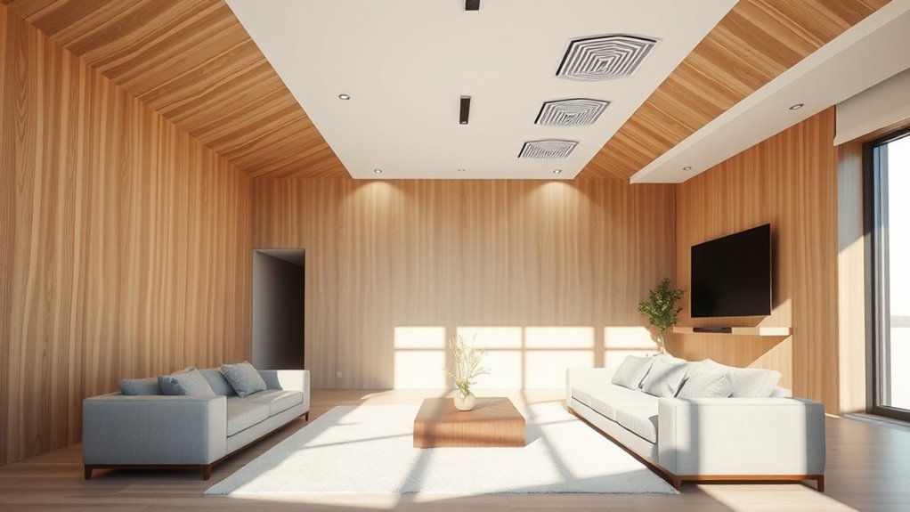 As you step into your open plan living space, you notice how the gentle hum of conversation and soft rustling of fabrics blend seamlessly, creating a harmonious sanctuary. Thoughtful acoustic design transforms your home into a refuge where sound flows effortlessly, like a calming breeze through open windows. With careful planning, you craft an environment that feels both lively and tranquil, inviting you to relax and enjoy every moment surrounded by balanced, soothing acoustics.