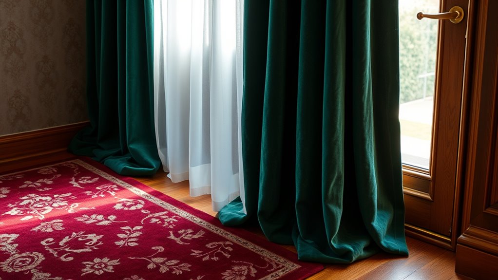 To improve sound control, choose plush carpets made of wool or dense synthetics and pair them with heavy curtains like velvet or blackout fabrics. Layer curtains with sheers for added sound absorption while letting in natural light. Ensuring proper placement and coverage maximizes effectiveness. Coordinating colors and textures creates a cozy look while reducing noise. If you want to learn how to optimize your space further, keep exploring options that suit your style and needs.