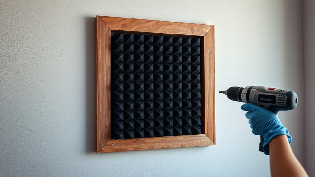 First, gather your materials. You’ll want some absorption material—fiberglass, mineral wool, or dense foam work well—and a frame to hold everything in place. Wooden or plastic frames are easy to build with basic tools. Cover your absorption material with breathable fabric, like burlap or muslin, which helps keep particles contained and allows sound waves to pass through efficiently. This creates a simple, functional panel that can be hung on your walls.