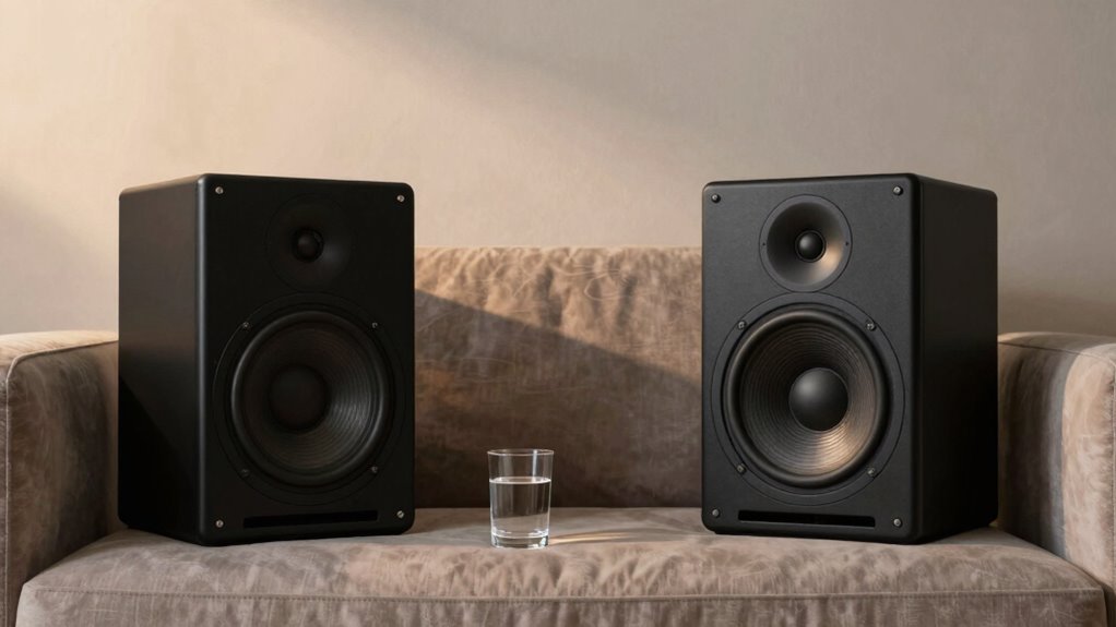Adding a second subwoofer can considerably enhance your audio experience by providing deeper, more even bass coverage throughout the room. This setup reduces bass nulls and peaks, creating a smoother sound. With two subs, you can maximize subwoofer crossover settings for seamless integration and better bass response. Proper subwoofer phase alignment ensures they work together without canceling each other out, maximizing output. Here’s a quick comparison: