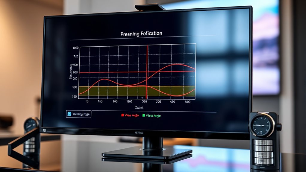 It’s common to overestimate how wide your display’s viewing angles need to be, but doing so can lead to unnecessary costs and design compromises. When you focus on ideal viewing, you may assume wider angles are always better, but this isn’t always true. Proper angle estimation helps you identify the actual viewing range needed for your application, saving you money and simplifying your design. Overestimating can result in overly expensive materials or complex optical components that aren’t necessary. Instead, analyze your target audience and usage scenarios to determine the minimal angles that still deliver a good user experience. This targeted approach ensures your display performs well within realistic viewing conditions without adding unnecessary complexity or cost. Focus on precise angle estimation to optimize both performance and budget.