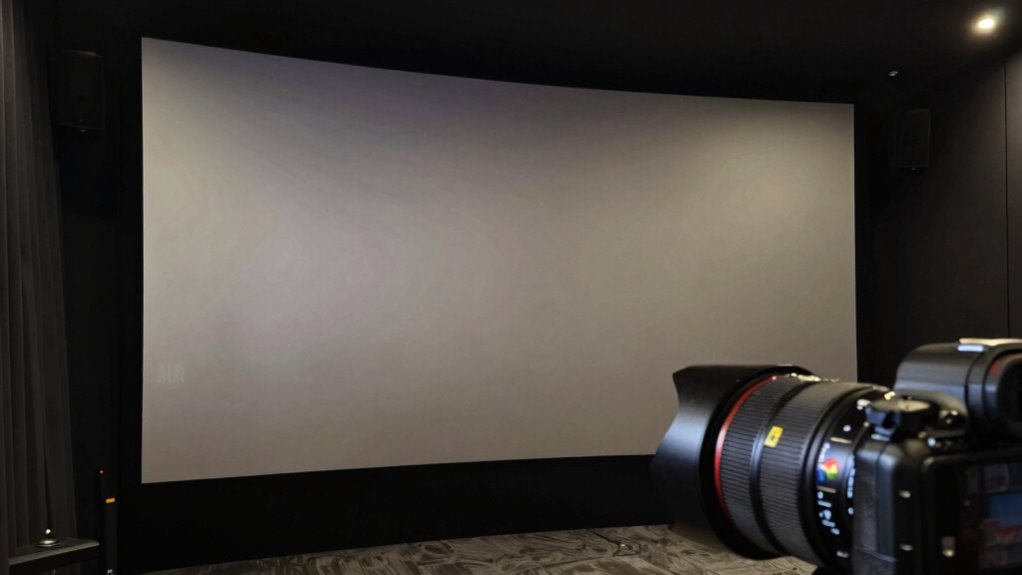 Room lighting plays a huge role in how well an ALR screen performs. If ambient light levels are high, you’ll need to adjust your screen brightness and optimize your room layout to reduce glare. Without controlling these factors, even the best ALR screens won’t deliver their full potential. Additionally, understanding the lighting conditions can help you choose the right setup for optimal viewing. Proper contrast ratio management is also essential to maintain image quality in varying lighting environments.