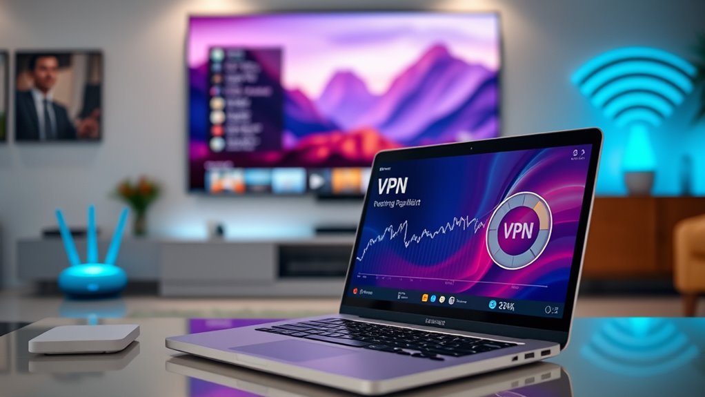 Choosing the right VPN service is essential for maintaining high-quality streaming, as not all providers deliver the same speed and reliability. When selecting a VPN, consider how well it handles VPN legalities and regional restrictions, ensuring you stay compliant while accessing content. A good VPN should offer fast, stable connections that won’t hinder your 4K streams. Visualize a VPN that: