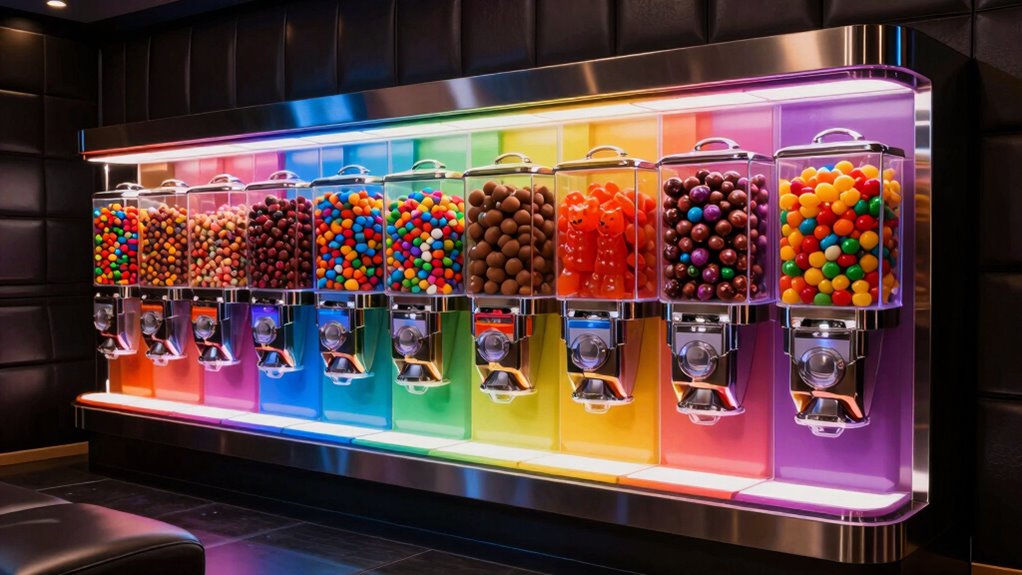 Choosing a candy dispenser that matches your home theater’s style can instantly elevate the overall look and feel of your snack bar. It’s important to pick a design and color that complement your décor, whether your space is modern, vintage, or playful. The material and transparency of the dispenser also matter—clear acrylic can add a sleek, contemporary touch, while other materials might suit more classic or quirky themes. Make sure the size and shape fit comfortably within your space without creating clutter. Additionally, opt for a design with user-friendly features like easy refilling and access that match your aesthetic preferences. When everything aligns, your snack bar feels cohesive, stylish, and inviting for everyone.