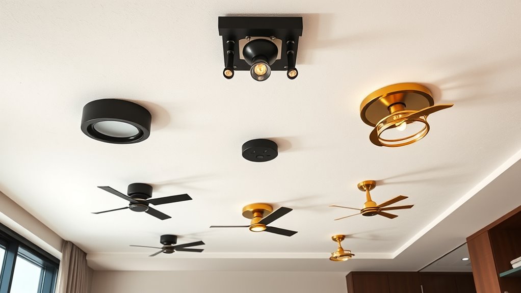 Choosing the right ceiling mount can truly elevate your living room’s style and functionality. For example, I once helped a client transform their space by replacing a dated fixture with a sleek, dimmable LED chandelier, creating a cozy yet modern vibe. Remember, considering factors like size, style, and control options guarantees your choice complements your decor and meets your needs. With the right mount, your living room will become both stylish and secure.