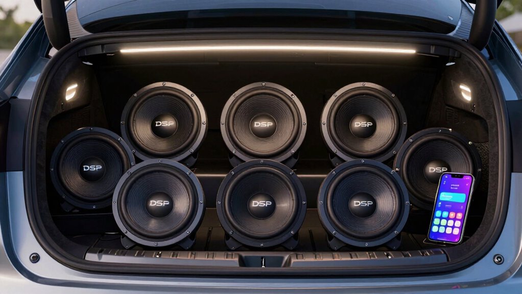 Think of app-controlled DSP subwoofers like a universal remote for your car’s audio system. Yes, you can integrate them with your existing setup, but it often requires some tweaking and compatibility checks. I once installed a subwoofer that seamlessly connected via app to my factory system, transforming my sound experience. Just make certain your head unit supports the connection, and you’re good to go for a customized, high-quality sound.
