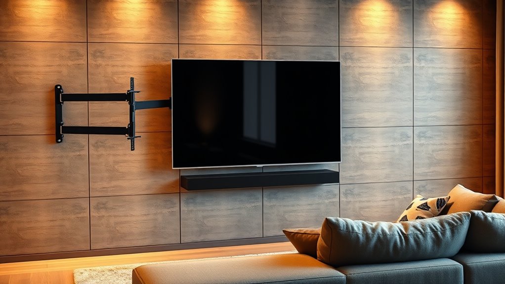 Choosing the right full-motion TV wall mount is like finding the perfect dance partner—balancing flexibility with stability. With options that glide smoothly and hold firm, you’ll turn your living space into a stage of comfort and style. So, pick the mount that moves with your needs, and watch your TV become a dynamic centerpiece, ready to sway and settle just as you desire. Your perfect view is waiting to take center stage!