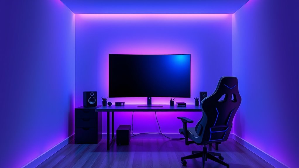 If you’re looking to upgrade your gaming setup in 2025, I recommend checking out the top 11 gaming screen paints that can dramatically improve your visuals. From green screen paints perfect for streaming and video production to projection screen paints that support 4K and 8K clarity, there’s something for everyone. These options are durable, easy to apply, and designed to enhance color vibrancy and contrast. Stick around to discover the best choices for your gaming environment.