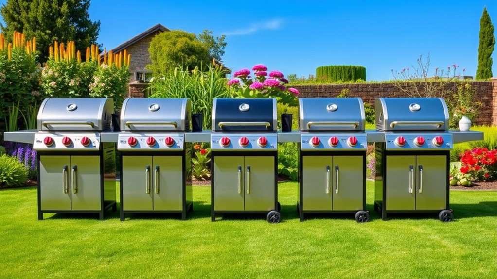 Budget-friendly gas grills can be surprisingly durable if you choose wisely and maintain them regularly. I’ve found that models under $500 often use quality materials like stainless steel or coated steel, which withstand rust and weather better. However, their longevity depends on proper cleaning, covering when not in use, and avoiding harsh elements. With good upkeep, these grills can serve you well for several seasons, offering great value without sacrificing durability.