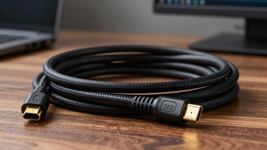 Choosing the right HDMI 2.1 cable is like finding the perfect key to open a world of stunning visuals and seamless gaming. With options like fiber optic and high-speed variants, you can tailor your setup to meet your needs. Remember, investing in a premium 50 ft cable guarantees you won’t lose quality or performance along the way. It’s a bridge to a future where your entertainment experience is as vibrant as your imagination.