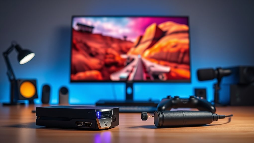 When it comes to maintaining my HDMI capture card, I keep it clean and dust-free, avoiding static buildup. I make sure to disconnect it properly when not in use and keep it in a cool, dry place. Regularly updating the firmware helps prevent bugs. Finally, I avoid exposing it to extreme temperatures or moisture, which can damage sensitive components and shorten its lifespan.