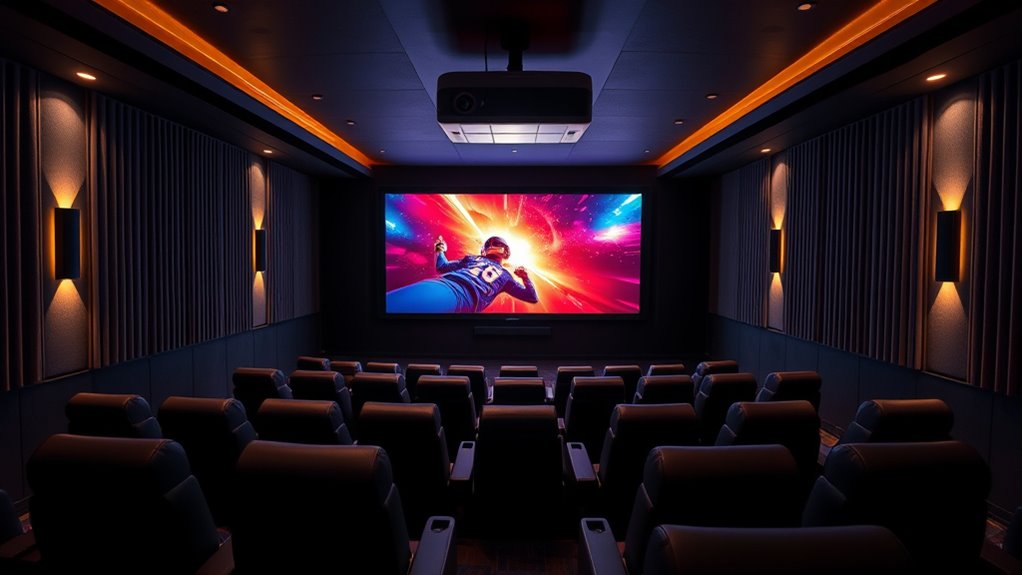 Imagine stepping into a room where shadows deepen and highlights burst with life—that’s what contrast ratio brings to HDR10+ projectors. It’s essential because it determines how vividly dark scenes appear next to bright ones. A high contrast ratio creates a stunning depth, making images pop and bringing your movies to life. Without it, even the best HDR tech can fall flat, losing that immersive, cinematic feel you crave.