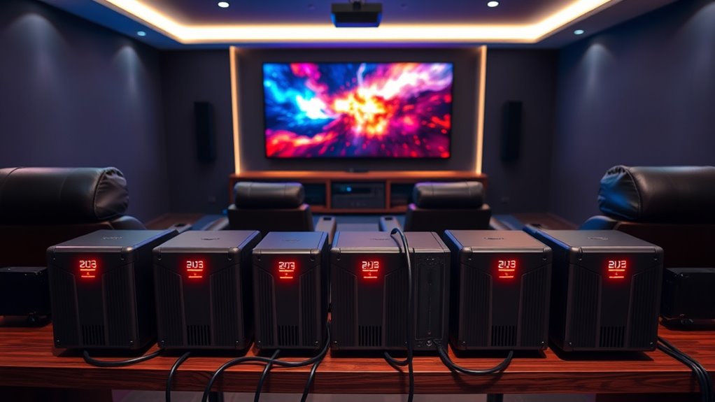 Choosing the right high-capacity home theater battery backup can truly be a game-changer, preventing your entertainment from suddenly vanishing into thin air. With the right power solution, you’ll enjoy uninterrupted movies and gaming like never before—it’s almost like having a magic shield against blackouts. So, pick wisely and invest in a backup that keeps your favorite moments alive, no matter what surprises come your way. Your ultimate home theater experience deserves nothing less!