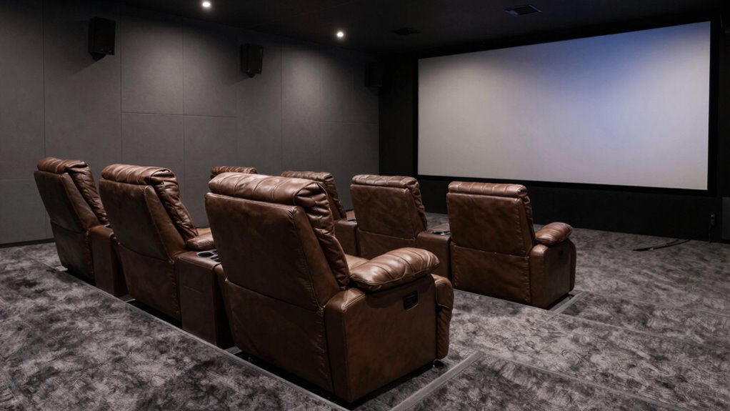If you’re looking for the 15 best home theater recliners under $2000 for 2026, you’ll find models that blend comfort, style, and affordability. Many of these recliners feature USB ports, cup holders, ambient lighting, massage tech, and sturdy materials like leather or fabric. They come with various recline options and ergonomic designs to suit different spaces and preferences. Keep exploring to discover top picks that will elevate your home entertainment experience.