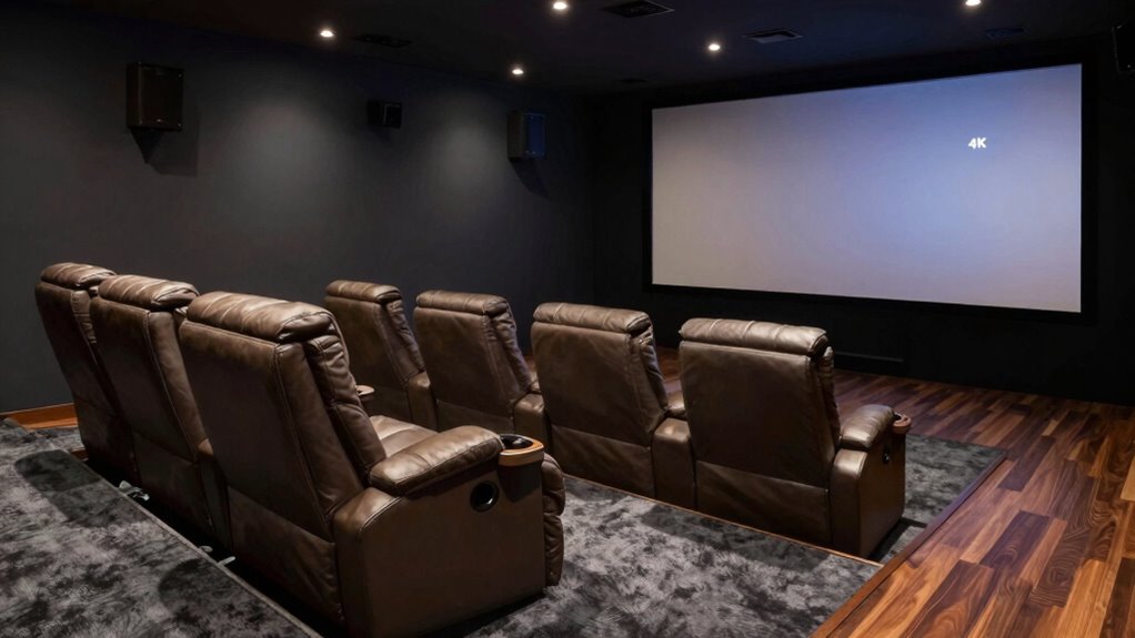 I’ve found the 15 best home theater seating options under $5000 for 2026 that combine comfort, style, and excellent features like USB charging, ambient lighting, and adjustable headrests. From plush leather recliners to modular zero-gravity sets, these selections maximize value and space while offering durability and ergonomic support. If you’re curious about the top choices and what makes them ideal, keep exploring—they’ll help you create the perfect home theater setup.