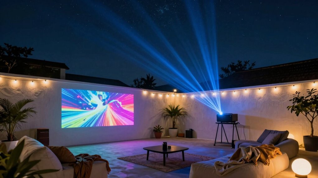 Laser projectors typically last between 20,000 to 30,000 hours when used outdoors, but this depends on factors like weather exposure and maintenance. I find that with proper care—keeping them protected from moisture and extreme temperatures—they can serve you well for many years. Regular cleaning and using weatherproof covers also help extend their lifespan, ensuring you enjoy your outdoor cinema nights without worry.