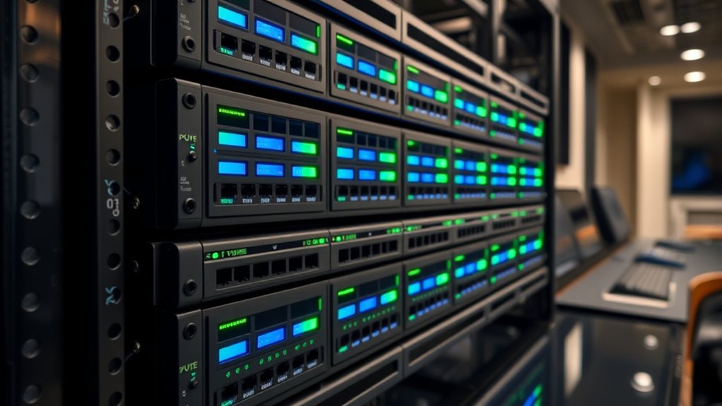 PDU features considerably impact AV system reliability by providing stable power, monitoring load, and preventing overloads. When a PDU has remote management and surge protection, I can quickly identify issues and avoid system failures. Smart features like real-time alerts and automatic shutdowns help me maintain continuous operation. Overall, choosing a PDU with robust features ensures my AV system stays reliable, efficient, and protected from power-related problems.
