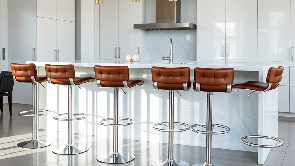 If you’re searching for the 15 best premium adjustable bar stools that perfectly blend style and comfort, I’ve got you covered. These stools feature sleek designs with high-quality materials like PU leather, durable metals, and elegant finishes. They offer versatile adjustments, sturdy bases, and ergonomic details that support long hours of use. Whether for your kitchen or bar area, these options combine both fashion and function. Keep exploring, and you’ll discover the ideal choice for your space.