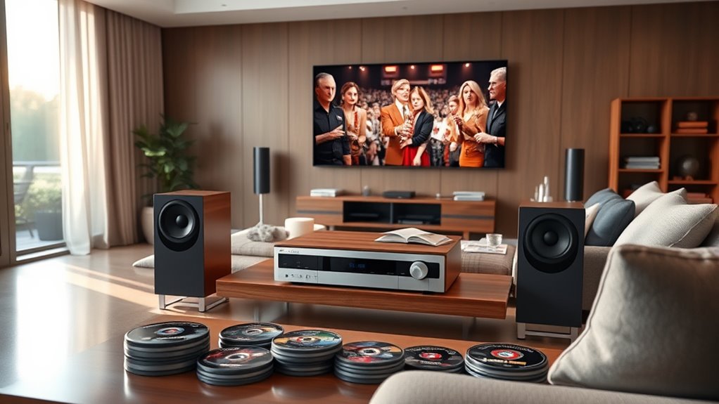 While exploring the world of premium DVD and Blu-ray players, you’ll quickly realize that audio performance is just as crucial as video quality. I always check for support for formats like Dolby Digital, DTS, and Dolby TrueHD, which deliver immersive sound experiences. Dual HDMI outputs are a game-changer, allowing me to separate audio and video signals for enhanced clarity. If you’re an audiophile, look for support for high-resolution audio formats like Hi-Res Audio and DSD; they offer studio-master quality playback. Built-in decoding for various surround sound technologies also makes integration with home theater systems seamless. Finally, enhanced audio circuitry and noise reduction features ensure I enjoy clearer, more detailed sound during every movie night.