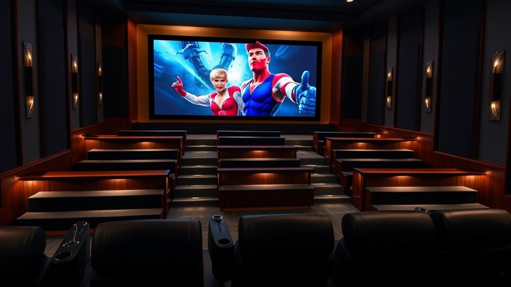Ultimately, choosing the right premium home theater risers is like finding the perfect harmony in a symphony—they subtly elevate your experience without overshadowing the show. When I consider comfort, stability, and style, I realize it’s the nuanced details that truly transform a good movie night into an unforgettable escape. So, take your time, explore what feels right, and let these risers quietly enhance your space—where every detail whispers luxury and comfort.