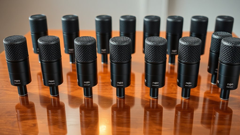 Calibration methodology is a crucial factor in selecting premium room acoustic measurement microphones because it directly impacts measurement accuracy and reliability. I look for microphones that come with factory calibration, including calibration files or response graphs that specify their frequency response and sensitivity. This ensures precise measurements right out of the box. In some cases, in-situ calibration using a reference microphone or controlled acoustic conditions can fine-tune measurements, especially for ongoing projects. Regular recalibration is essential to account for sensitivity drift over time, maintaining measurement integrity. Digital calibration methods, like software adjustments, can also help correct known deviations, boosting reliability. Overall, choosing mics with robust calibration options ensures consistent, accurate sound analysis in professional environments.