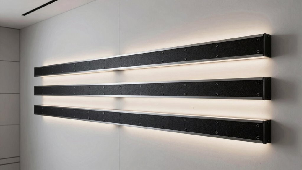 Ever wonder how much a resilient channel kit can truly reduce noise? Resilient channels can boost sound transmission class (STC) ratings by up to 20 points, making a noticeable difference in noise transfer. When installed correctly, they can cut airborne noise transfer by as much as 75%, markedly improving soundproofing. Using resilient clips along with channels helps decouple drywall from framing, further minimizing impact noise. Thicker, high-gauge steel channels generally offer better soundproofing because they’re more durable and effective at isolating sound vibrations. For peak performance, overlapping channels by at least six inches ensures continuous sound isolation and maximizes noise reduction. Choosing the right combination of these factors can dramatically enhance your wall’s soundproofing effectiveness.
