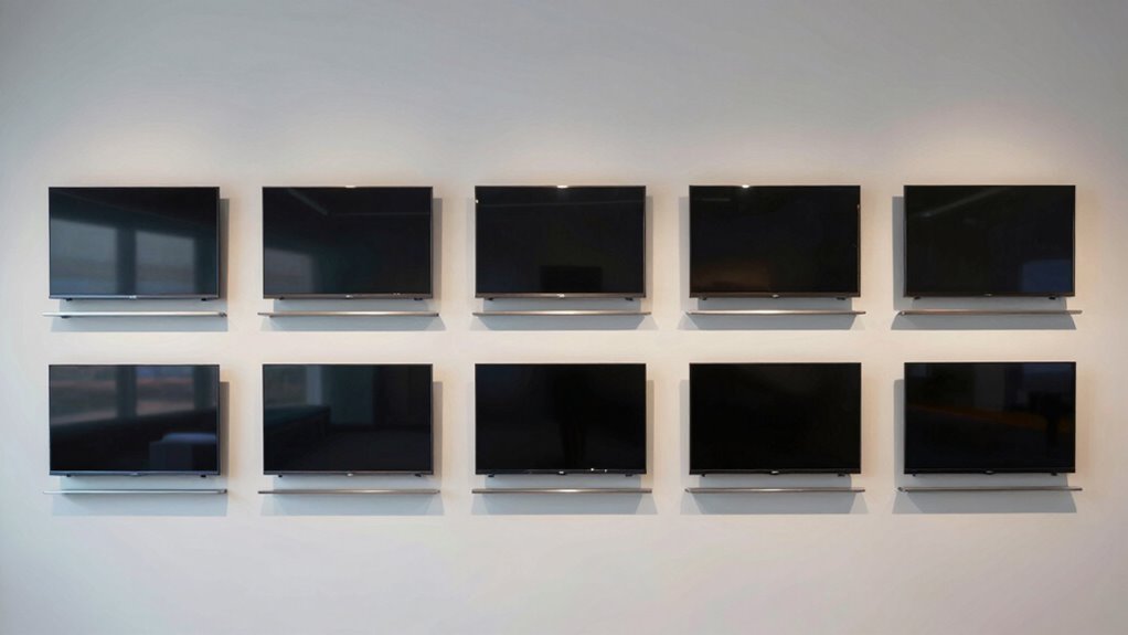 Supporting accessories are essential for guaranteeing that your ultra-flat screen frame maintains proper tension and stability. Corner connectors, like plastic or metal brackets, help with precise assembly and keep the frame flat. Spline, whether flat or round, ensures a snug fit around the mesh edges, boosting stability. Tension springs or clips apply consistent tension across the fabric, preventing sagging and creating a smooth surface. Using the right size and type of spline is vital for ideal fit and support. Additionally, tools such as screen rollers and tensioning devices make installation easier, helping you achieve even tension throughout the frame. These accessories work together to guarantee your screen remains flat, taut, and durable, providing a professional-looking result.